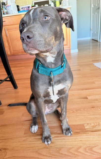 Animal Characteristics: Ellie is a stunning, joyful puppy who is as beautiful as she is full of life. With her soft grey coat, striking white markings, and touches of tan brindle, she turns heads everywhere she goes – but it’s her joyful, spirited personality that truly makes her unforgettable. She is EXTREMELY high energy in the best way! Think hiking partner, running buddy, backyard zoomie champion. She thrives in an active environment and would love a family that’s excited to include her in daily movement and play. Despite all of her energy, Ellie has such a soft, loving side. She’s incredibly sweet, affectionate and bonds deeply with her people. After she’s had a good outlet for her energy, she’s all about the cuddles! She is crate trained and doing well with structure and routine. She knows multiple commands, and if you say “Ellie belly,” she’s encouraged to roll over on her back for a belly rub. She likes meeting new friends, is crate trained, likes to ride in a car, and is completing her potty training. Like all young dogs, Ellie will benefit from continued training and socialization so that she develops the best manners. If you’re looking for a loyal, loving, high-energy companion who will bring so much joy, laughter, and life into your home, Ellie just might be your girl. Come meet her – you’ll fall in love quickly!