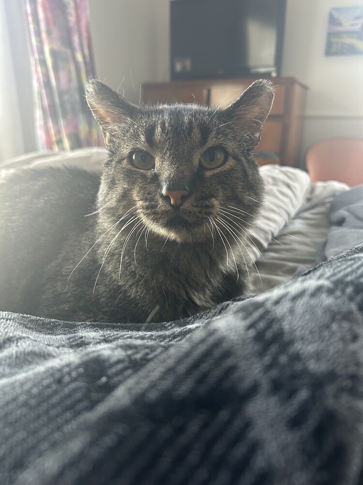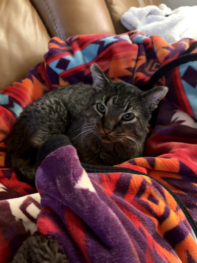 Animal Characteristics: Mr. Grey is a sweet, shy but friendly, curious older gentleman who deserves a loving, cozy forever home. Once he’s warmed up a little, he loves to sit on/near you, cuddle and enjoys scratches around his neck and treats. He has an adorably grumpy face, but he’s not grumpy at all! He is a sweet old man who enjoys snuggling, petting and a soft brush. He will be excited to see you, rub on your leg and ask you for his favorite foods. This precious boy was found living outside in a cat colony and was rescued before the weather turned cold. He is enjoying the indoor life, and is ready for a loving, patient adopter! He is adorable and immensely deserving of warmth, abundant love, soft blankets and all his favorite treats!