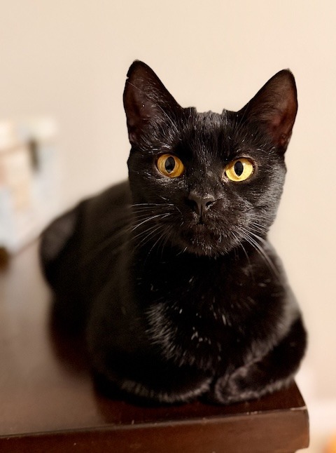 Energy level: Medium. She likes being petted, hopping up to look out the window, and climbing her cat tree. She plays with her kitten for brief periods of time. She does not currently play with toys often, but she has been busy being a young mom!