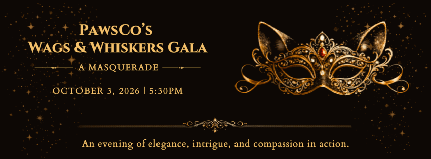 PawsCo’s annual Wags & Whiskers Gala returns this October with our most ambitious evening yet — a masquerade ball that blends mystery, glamour, and the kind of purpose that only comes from doing something that truly matters.